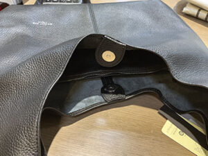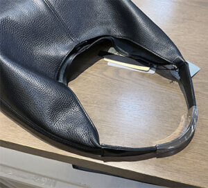ショルダー部分の金具のシルバーはこのブランドらしいキレイな磨きで