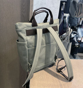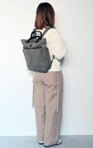 すっきりとしたフォルムが印象的なスクエア型のリュックサック
